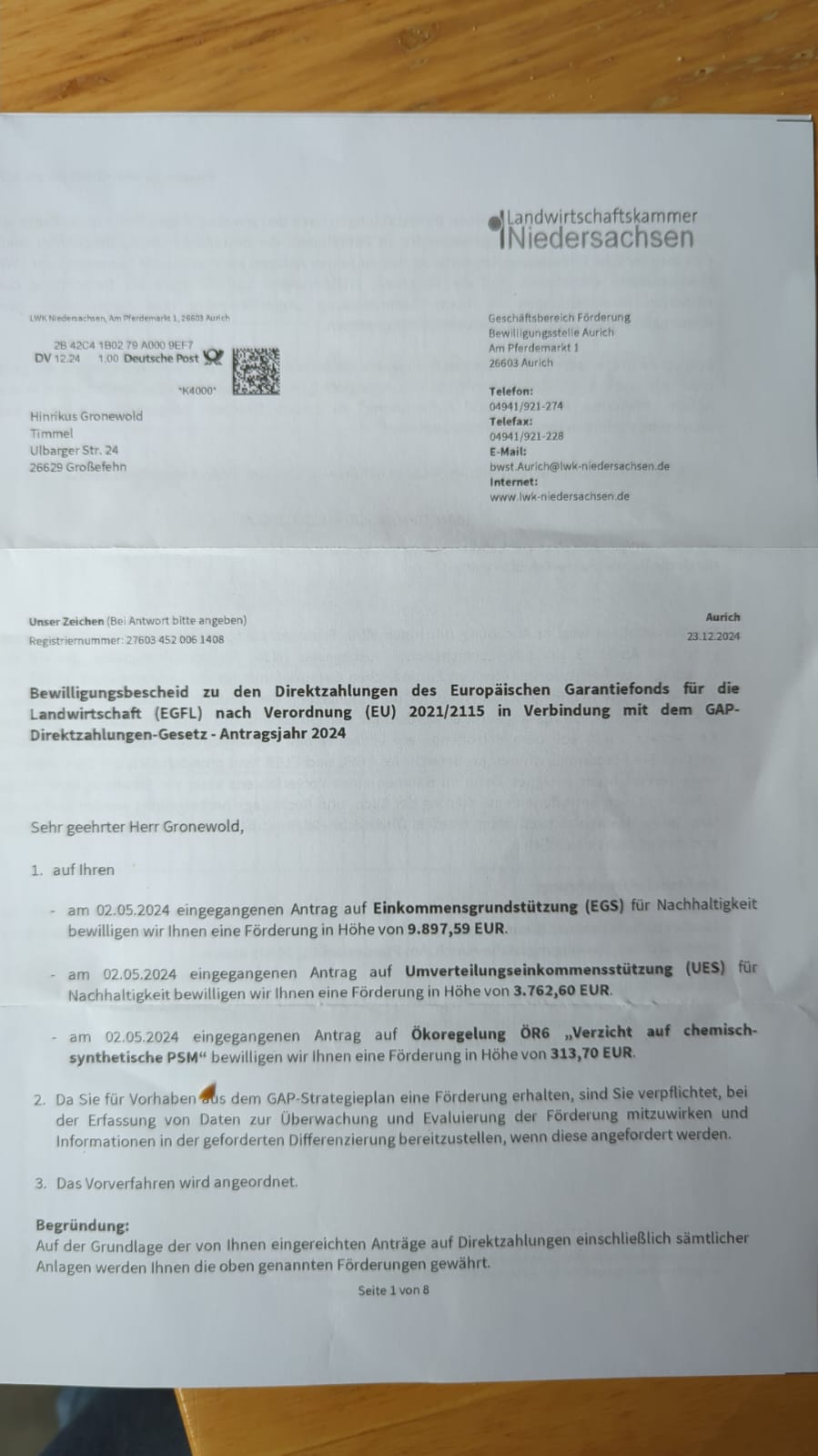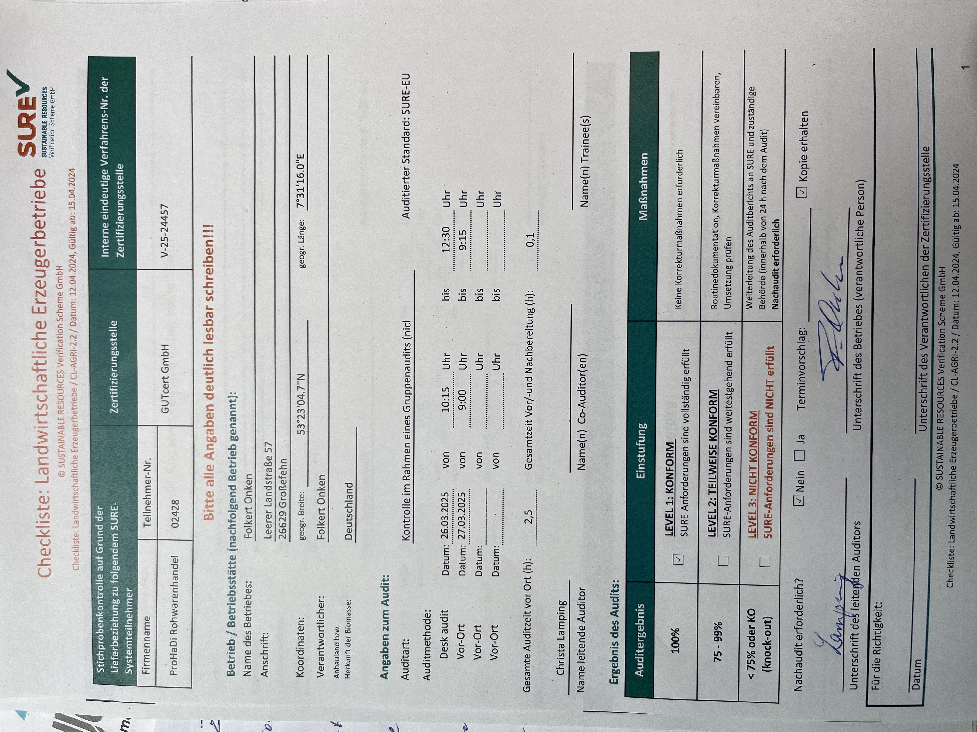 | Onken, Folkert | Folkert | Onken | 26629 | Grossefehn | Leerer Landstr. 57 | 0173-2011225 | Roggen-Tritikale-Weizen | Yes | 1.000 | 1.00 ha | 5.28 t | 5.28t | 2024 | Yes | Vertrag | Yes | ||||||||