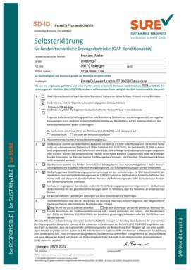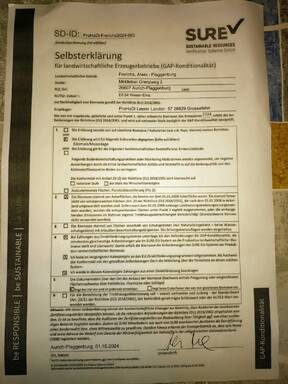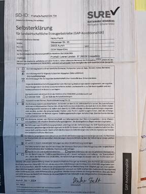 | Abgeber Betriebsname | Vorname | Nachname | PLZ | Ort | Strasse | Mobiltelefon | Erntegut | Selbsterklärung unterschrieben | ha | ha sind nachaltig | Liefermenge | Menge nachhaltig | Selbsterklaerung | Bild 1 | Bild 2 | Bild 3 | Bild 4 | Bild 5 | Bild 6 | Prüfbestätigung | Erntejahr | geerntet | Vertragsstatus | Sure Prüfauswahl |
