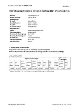 | Gerdes GbR und Gerdes, Waltraud | Klemens | Gerdes | 49696 | Resthausen | 015225882923 | Silomais frisch, Silomais frisch | Yes, Yes | 61.800 | 61.80 ha | 2,885.97 t | 2,885.97t | 2024 | Yes | Vertrag | ||||||||||